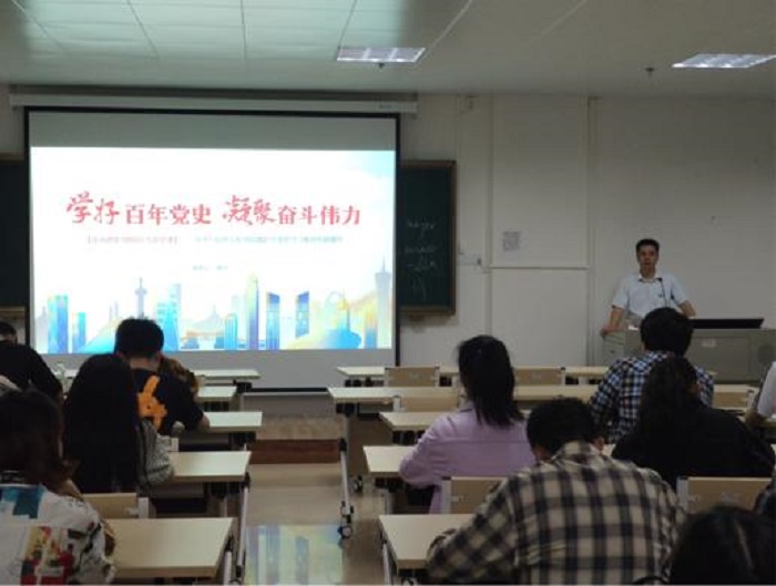 2021年4月29日,太阳集团官网举行员工党员学习建党100周年党史党课在科技楼407教室举行。电信公司党总支副书记陈兴主讲,学院员工支部全体党员、预备党员、入党积极分子和党建中心的成员们聆听本次党课。
