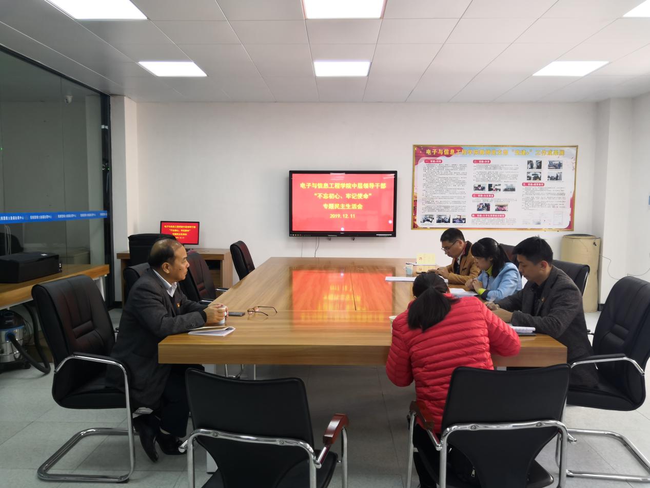 12月11日下午,太阳集团官网在视频数据实验室召开中层领导干部“不忘初心、牢记使命”专题民主生活会。学校玉振明副董事长参加指导该学院专题民主生活会。学院领导郭慧、陈兴、侯义锋同志参加会议,办公室副主任、员工工作办公室主任列席会议。